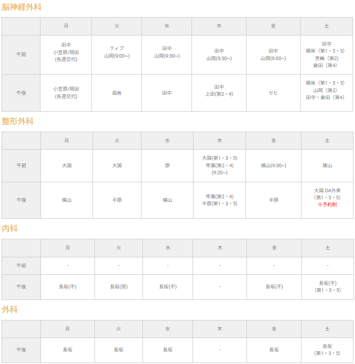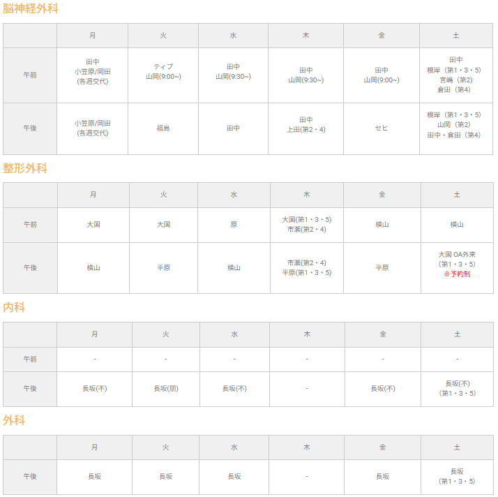 ※各診療科により受付が異なりますので各診療科の担当医表をご覧ください。