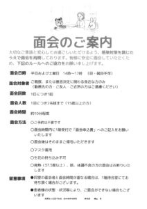 詳しくは下記【面会のご案内】をご参照ください。